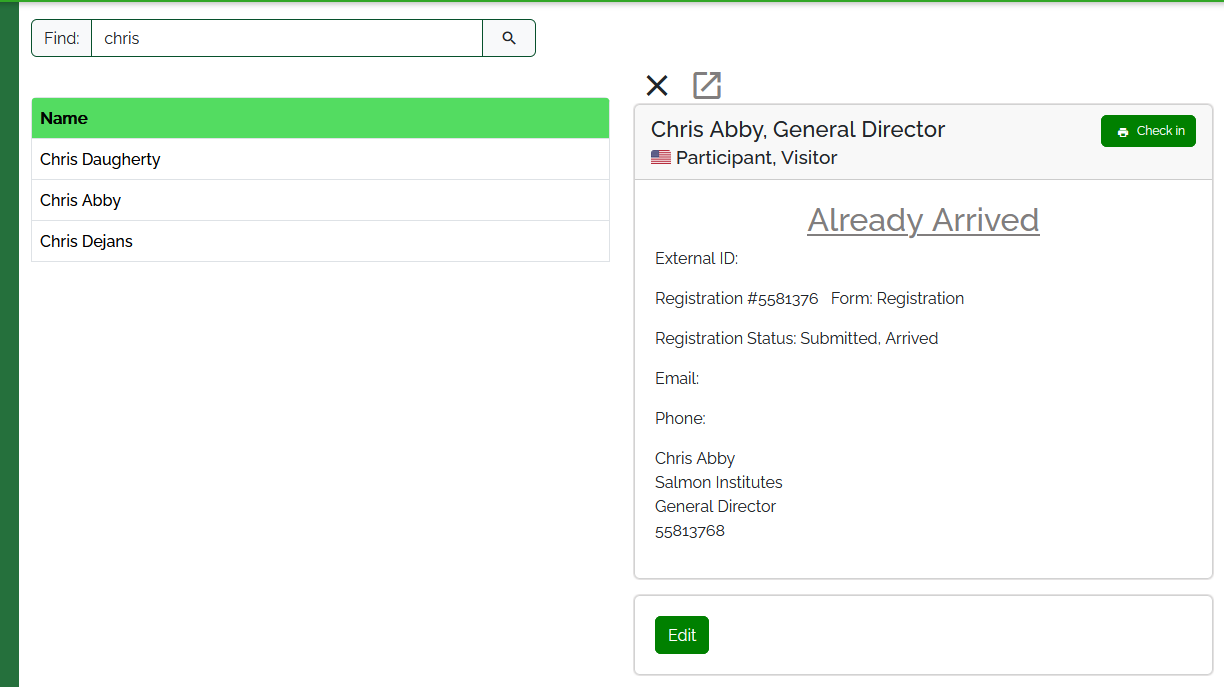 The most frequent operation is checking in an individual guest and printing their badge. This is how you handle an arrival: