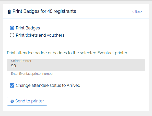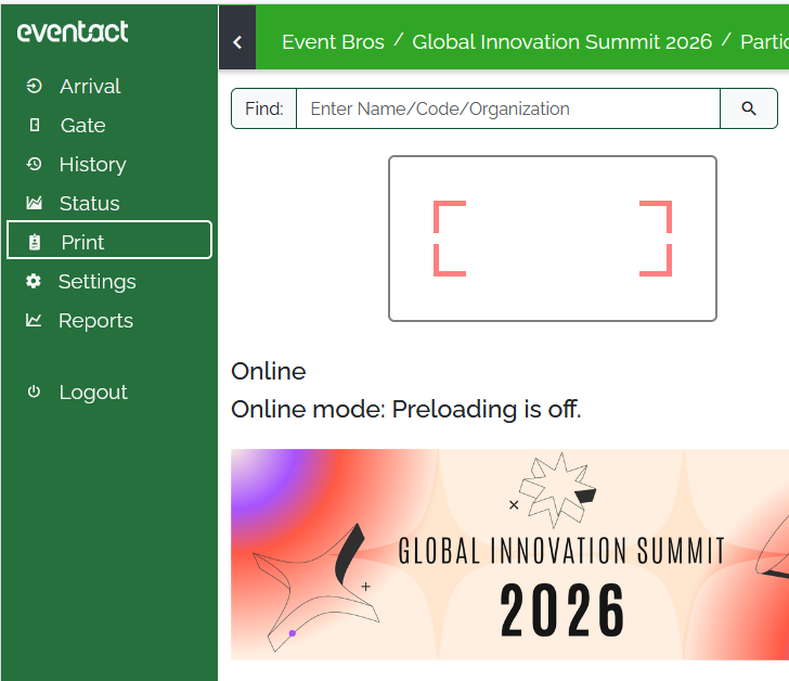 A. Printing from Eventact Arrival (Recommended for Desk Staff)